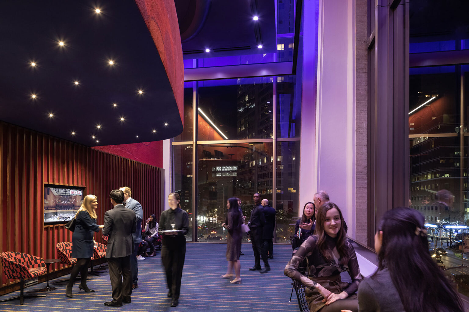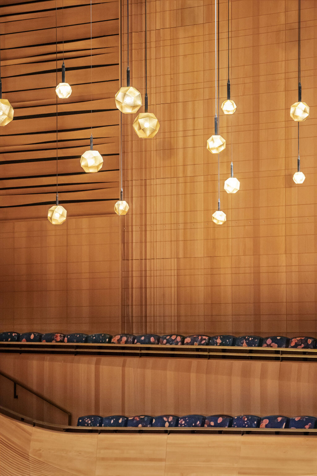 The concert hall redesign and complete renovation, opened to the public two years ahead of schedule. Undulating interior walls are illuminated asymmetrically emphasizing the highlights and shadows of the natural, warm, sculpted beechwood. Custom designed light-pendants dance before each performance, signaling the audience to be seated. The stage has been brought forward by 25 feet, allowing the audience to envelop it on all sides. With greatly improved performance acoustics, the design’s state-of-the-art flexibility accommodates opera, dance, and film, ensuring artistic vitality for a new generation of composers and performers.